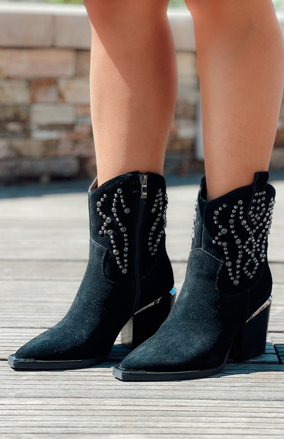 Alma en Pena's VALLEY booties are the perfect blend of elegance and originality, ideal for enhancing your bohemian outfits. In soft, refined nubuck leather, they feature a pointed toe accented with a touch of chrome, adding a note of modern elegance. Delicately inlaid pearls and rhinestones add a touch of glamour, while the inside zipper ensures quick and easy slip-on. With their non-slip soles and stiletto heel, they're as comfortable as they are stylish.
