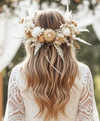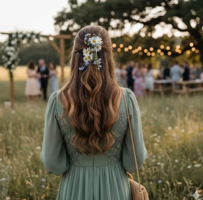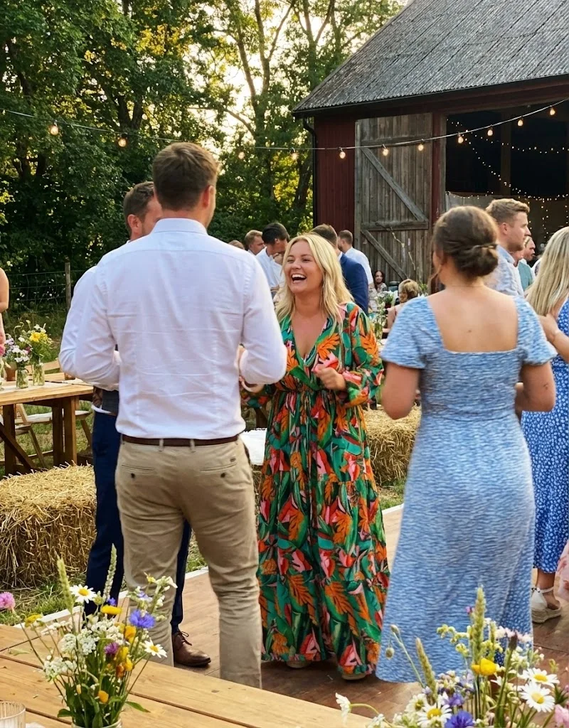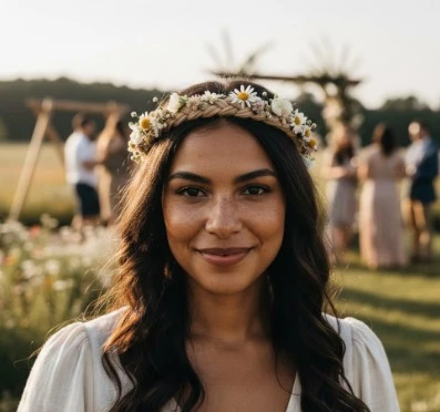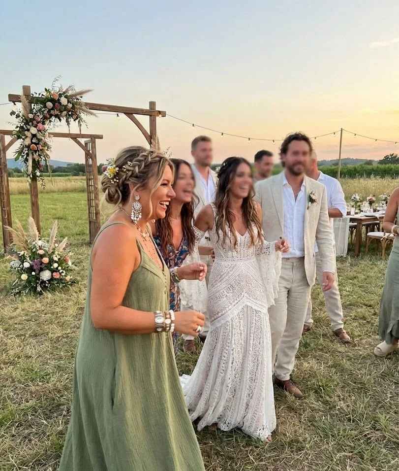 La robe bohème midi, c'est cette longueur qui pardonne tout. Ni trop longue pour marcher dans l'herbe, ni trop courte pour s'asseoir en tailleur lors de la cérémonie laïque. Elle tombe juste sous le mollet, flotte au moindre souffle, vous accompagne du vin d'honneur à la dernière danse sans jamais vous trahir. La coupe évasée libère les jambes, la dentelle au décolleté ou les broderies sur les manches apportent cette féminité discrète qui n'a rien à prouver. Pour les mariages un peu plus formels où le long ferait trop, le court pas assez c'est elle. Légère, aérienne, juste ce qu'il faut.