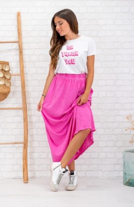 Stylée et décontractée, telle est la devise de la jupe longue KIMY rose de la marque Banditas.